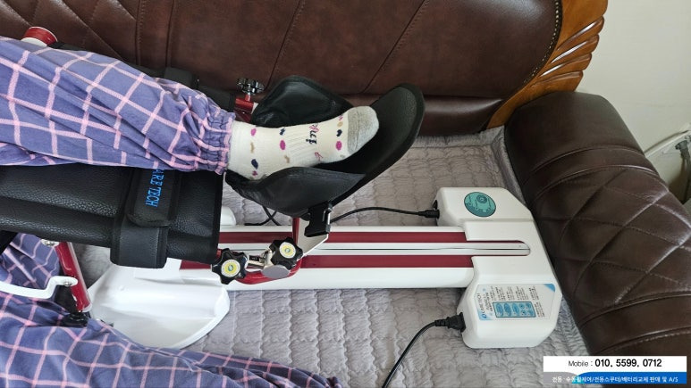 환자가 스스로 힘을 주지 않아도 기계가 무릎 관절을 일정 속도로 굽혔다 펴주는 재활 장비입니다.