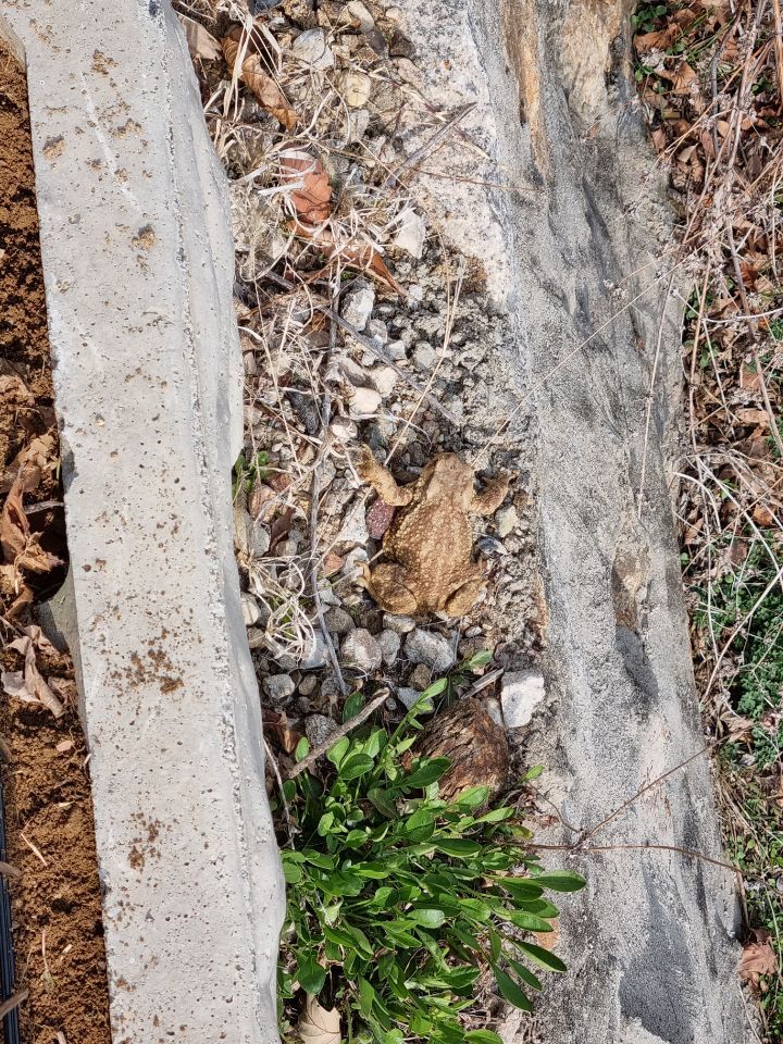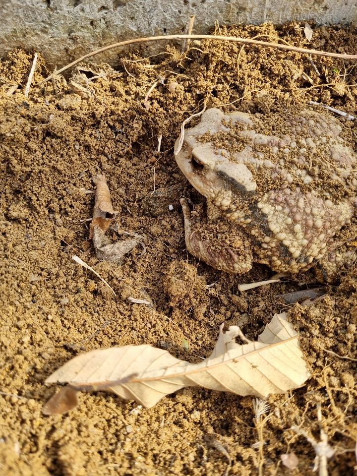 두꺼비가 자다 깨서 쳐다 봅니다.