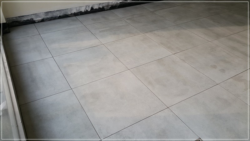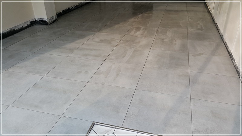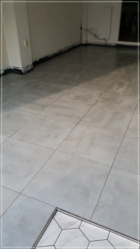 포세린 타일이 연한 회색이라 진회색 줄눈을 넣었습니다.