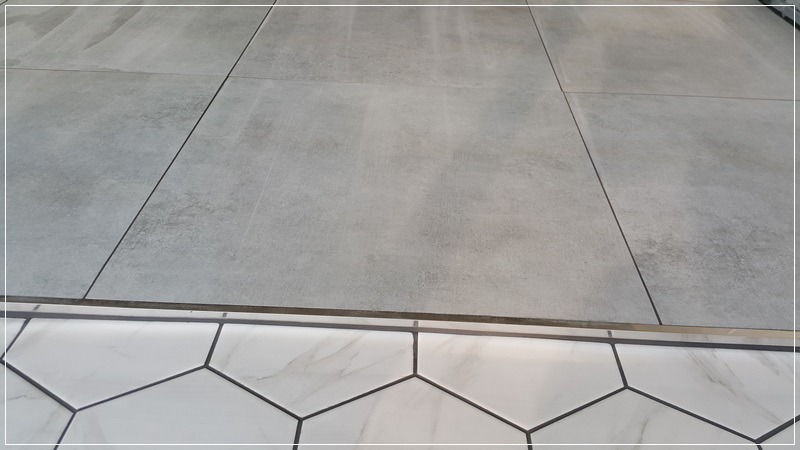 포세린 타일과 경계 부분은 스텐코너비트를 넣어주었습니다. 훨씬 더 고급스럽죠.