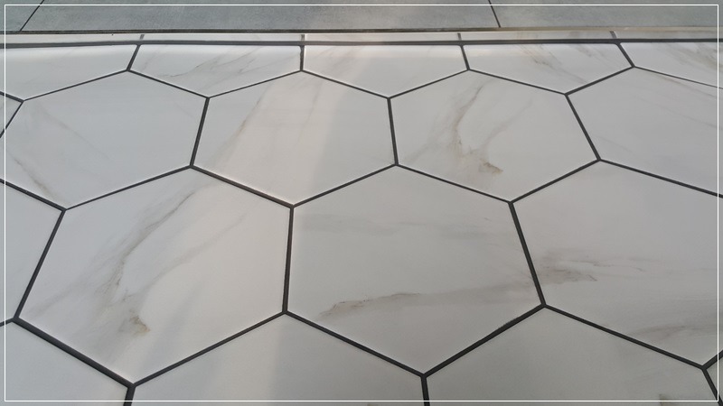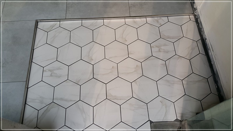 출입구 쪽은 비안코헥타곤 타일을 깔았습니다.