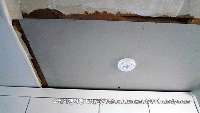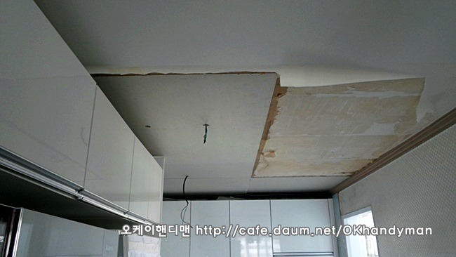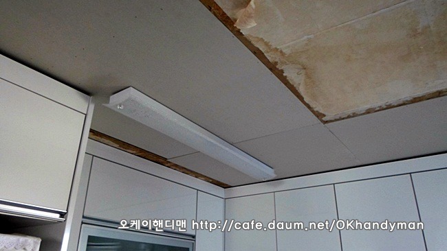 그래서 천정 석고보드를 교체하기로 했는데요...문제는 씽크대 상부장입니다.