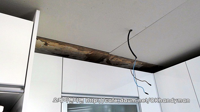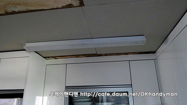이 사진을 잘 보세요. 씽크대 상부몰딩을 철거한 사진입니다.