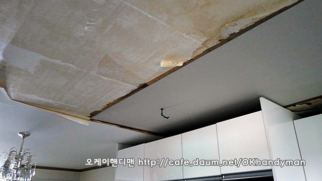 아파트 윗층에서 누수로 인해서 아래층이 저렇게 되었습니다.