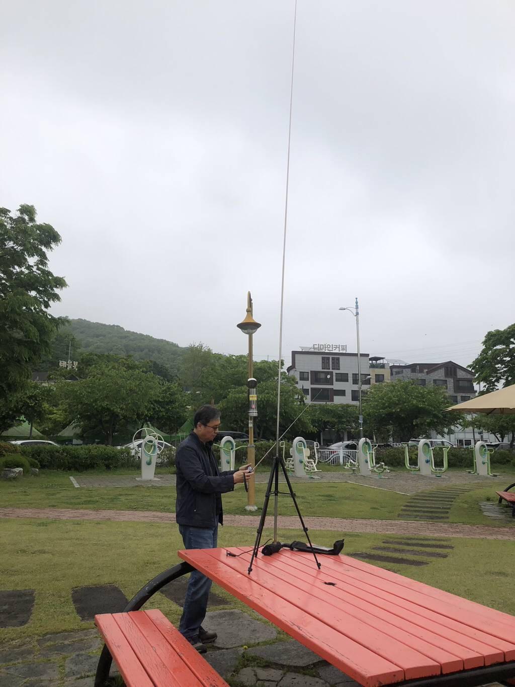 이동식으로 개량한 수직 안테나 설치중..