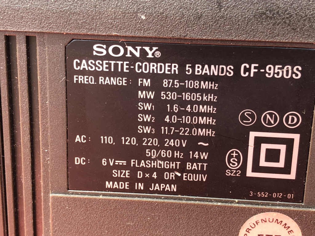 Sony CF-950S 카세트 장착