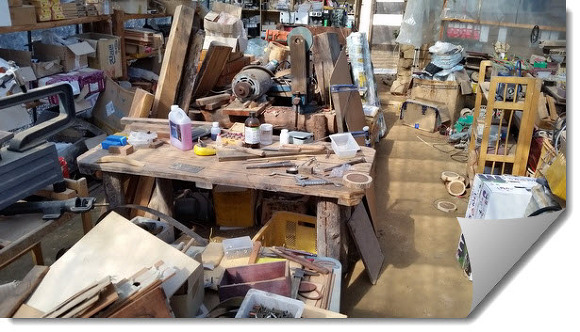 작업장 안에는 다른 사람들은 공구와 부품들을 못찾아옵니다.