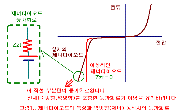 이때 Zzt = 0 옴 일때 이상적인 제너다이오드가 됩니다.