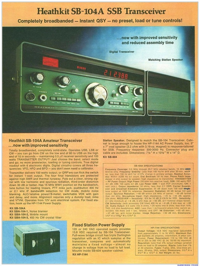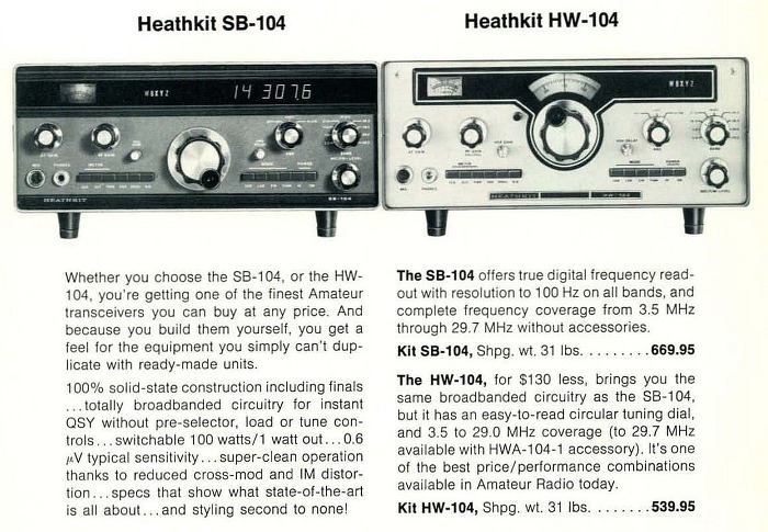 1975년 크리스마스 시즌에 발매된 Heathkit HW104는 1년전에 발매된 SB104의 저비용 예산의