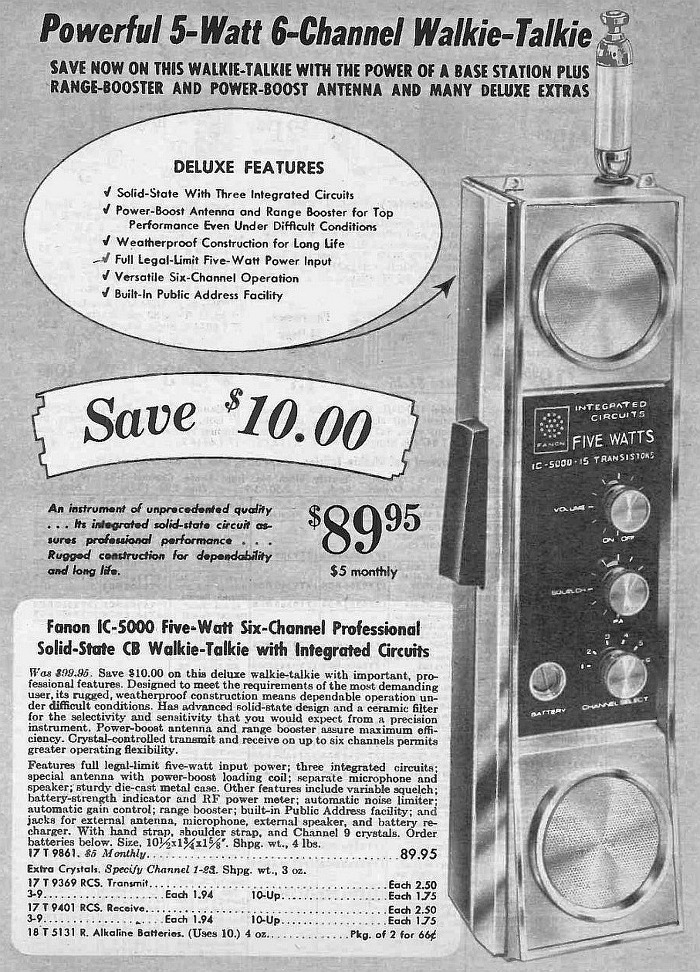 Allied사에서 판매한 1969년 All Transistor식 5W출력의 CB용 Walkie Talkie입니다.