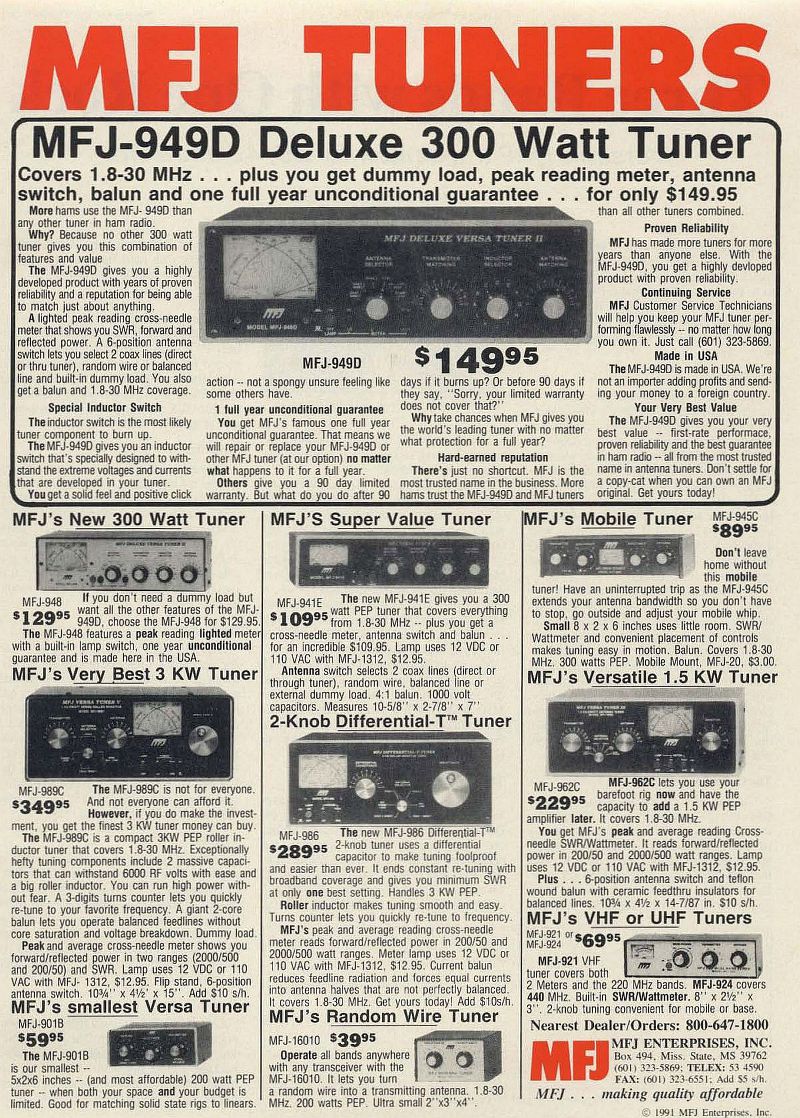 [1991년] MFJ Tuners 작성자별빛바라기|작성시간20.09.16|조회수116 목록 댓글 1 글자크기 작게가 글자크기 크게가 아마추어 무선사들께 많이 알려지고 또한 많이 사용되고 있는 미국 MFJ사 Tuner 광고입니다.73 Magazine 1991년 6월호에서 다음검색 현재 게시글 추가 기능 열기 북마크 공유하기 신고 센터로 신고 댓글 댓글 1 댓글쓰기 답글쓰기 댓글 리스트 작성자운영지기 | 작성시간 20.09.17 VHF/UHF 튜너가 아직없어시설보강차 구하고 싶어지군요.. 댓글 전체보기
