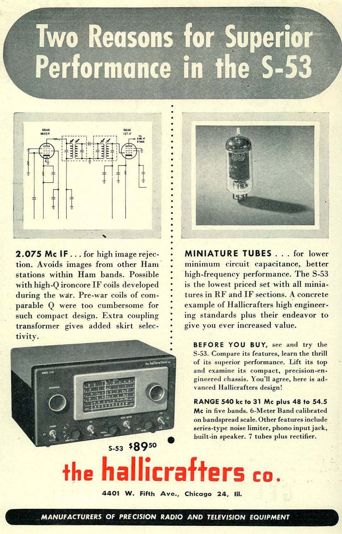 S-53은 Hallicrafters에서 1948년부터 1950년까지 판매가 되었으며 5Band로 HF대에서
