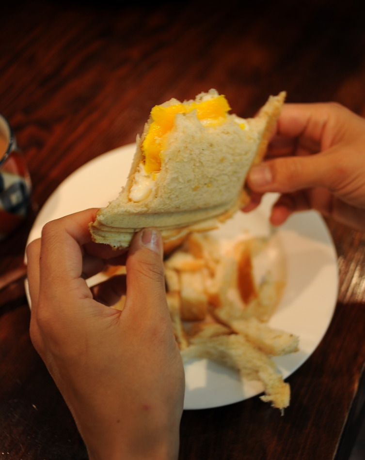 겨란의 노른자가 살짝 베어나오면서 녹녹한 치즈와 엉켜