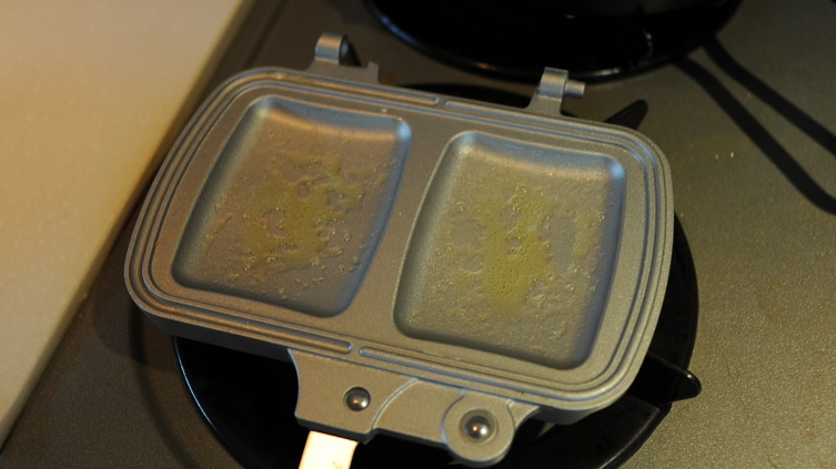 한쪽에는 버터를 발라 빵구울 준비를 하고