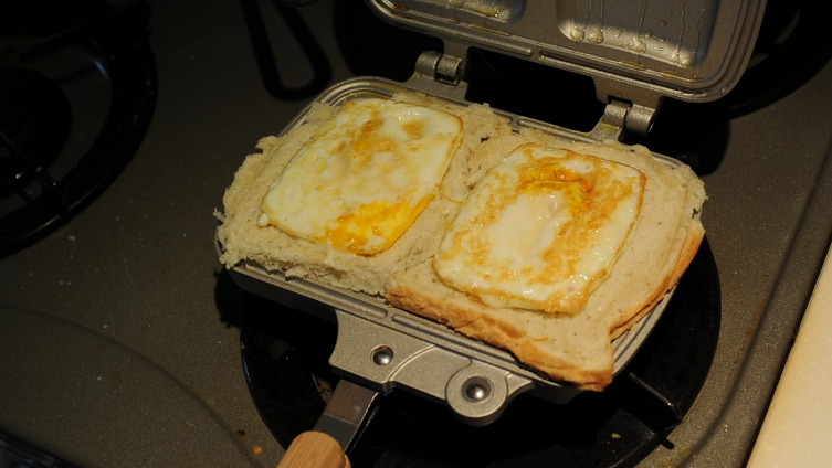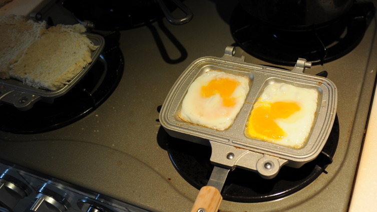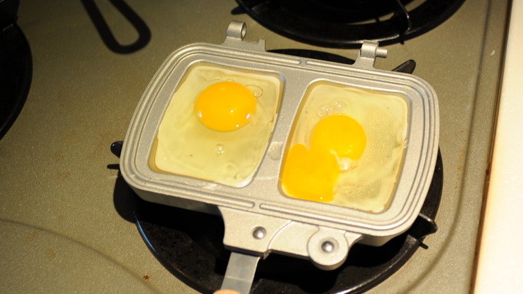 한쪽에는 식용류를 발라 겨란 후라이를 한다