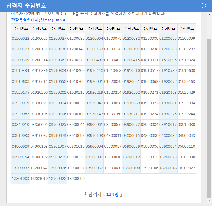 관광통역안내사(일본어) 134명