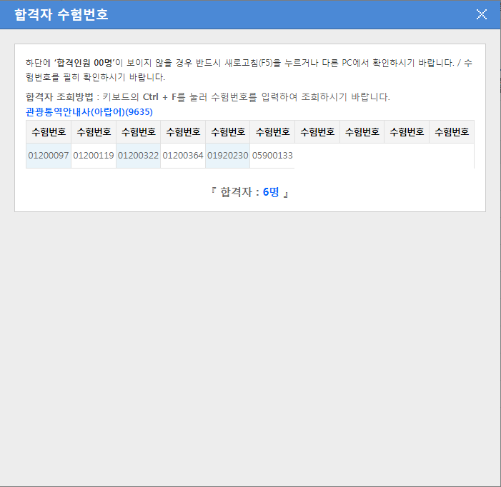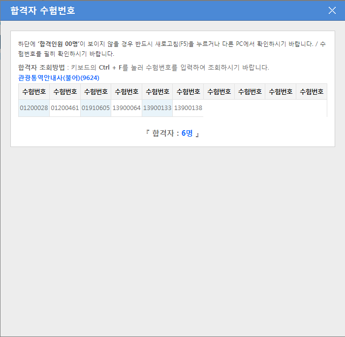 관광통역안내사(불어) 6명
