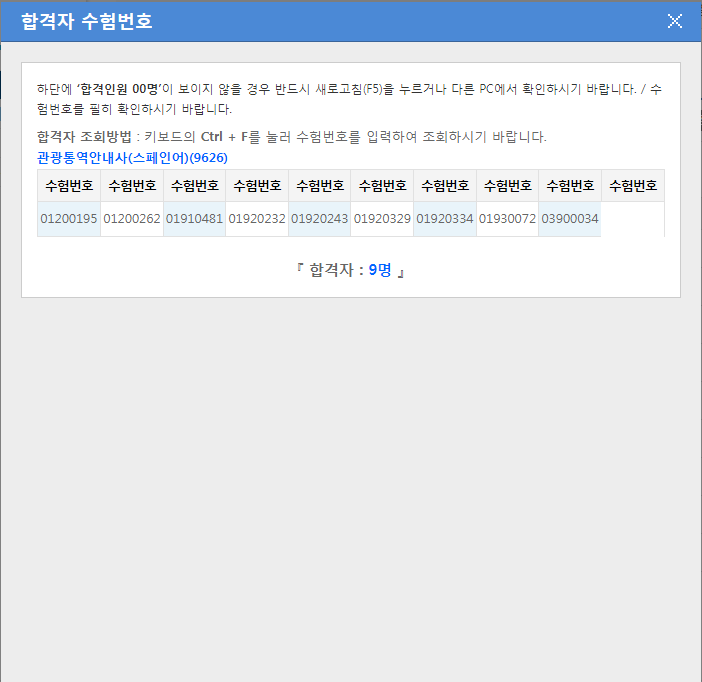 관광통역안내사(스페인어) 9명