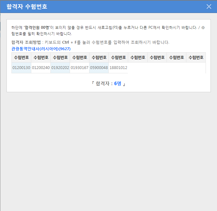 관광통역안내사(러시아어) 6명