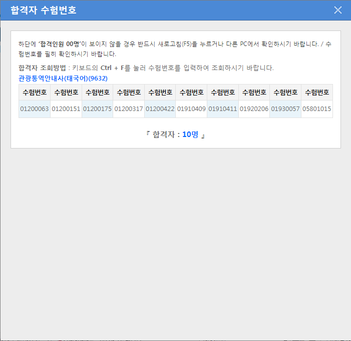 관광통역안내사(태국어) 10명