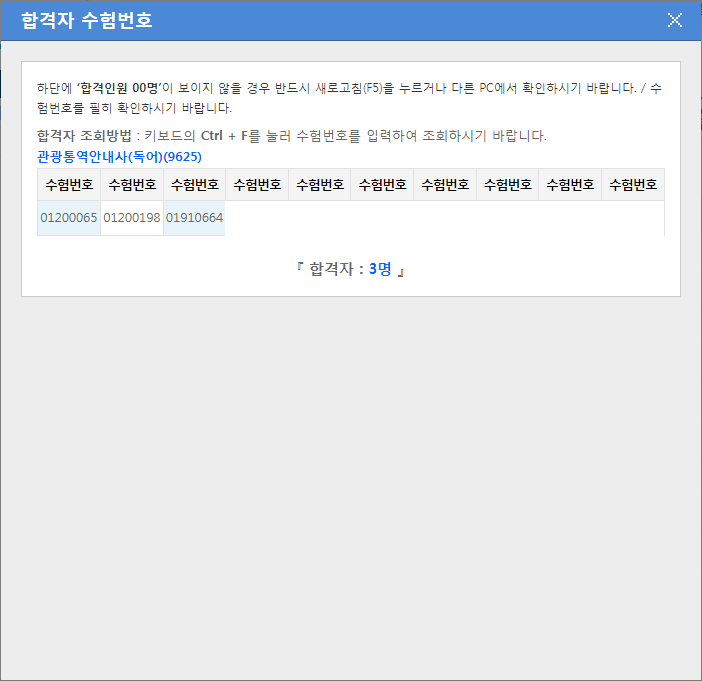 2021년 관광통역안내사 제2차(면접) 시험 합격자: 영어 456명, 중국어 194명, 일본어 134명 베트남어 39명 등