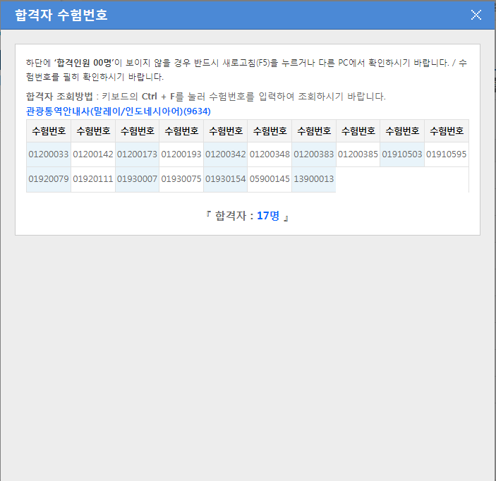 관광통역안내사(말레이/인도네시아어) 17명