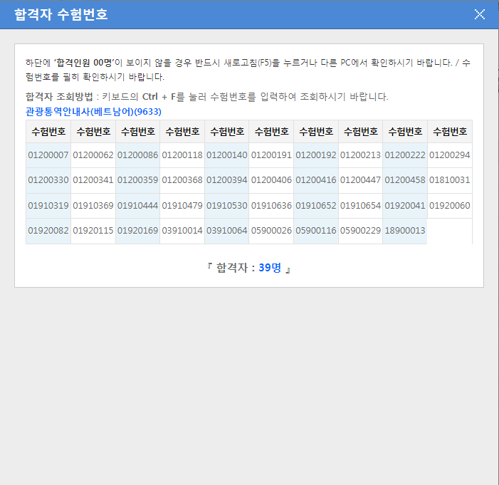 관광통역안내사(베트남어) 39명