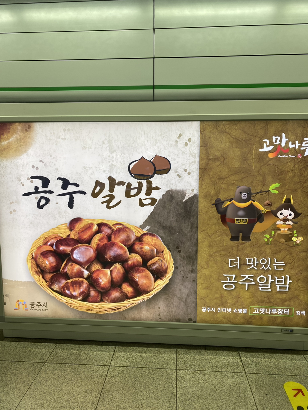 지하철 광고에 나타난 공주알밤. 작성자이응주|작성시간25.06.18|조회수28 목록 댓글 1 글자크기 작게가 글자크기 크게가 공주는 역시 밤이죠 다음검색 현재 게시글 추가 기능 열기 북마크 공유하기 신고 센터로 신고 댓글 댓글 1 댓글쓰기 답글쓰기 댓글 리스트 작성자bodam2015 | 작성시간 25.07.18 가을에 밤 주우러 가고 싶네요. 요즘은 이것도 불법이라고.... 댓글 전체보기