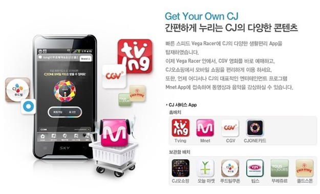 했습니다. 그래서 일부 디자인을 변경하고 CJ 관련 어플들을 대거 첨부했다고 하네요.