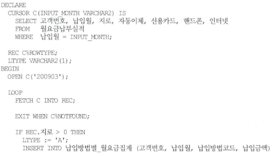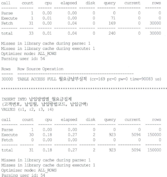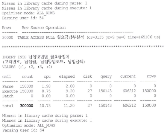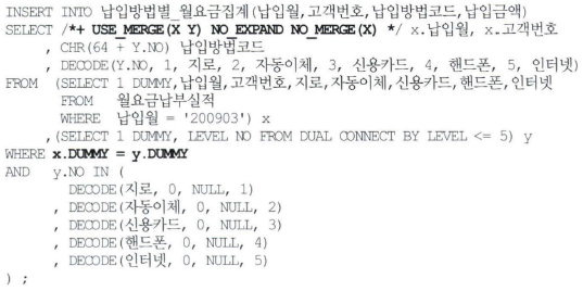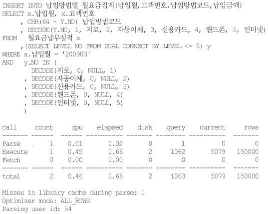 <'납입방법별_월요금집계' 테이블을 읽어 '월요금납부실적'을 가공하고자 할 때 I/O 효율 고려 안한 경우>