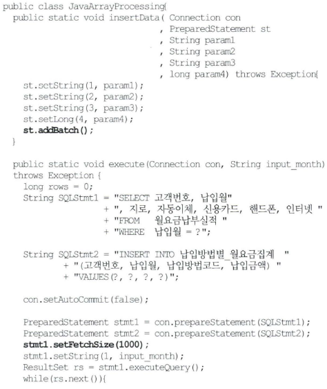 - Array Processing 기능을 활용하면 한 번의 SQL 수행으로 다량의 로우를 동시에 insert/update/delete 할 수 있다.
