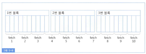 - 첫 번째 Fetch에서 읽은 1번 블록을 2~4번째 Fetch에서도 반복 액세스하게 된다.