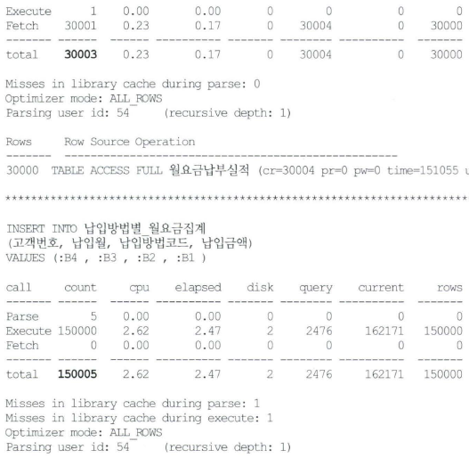 -> insert된 로우 수가 150,000건이므로 매번 5,000건씩 Array Processing한 것을 알 수 있다.