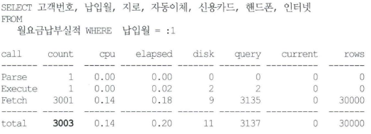 ( SQL*Plus나 Orange가 아닌 다른 쿼리 툴에서는 Fetch Call이 두 번만 발생하며, 첫 번째 Fetch에서 5건, 두 번째 Fetch에서