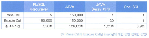 -> PL/SQL문으로 수행했을 때 7.25초 소요, select와 insert를 합쳐 총 18만 번가량의 데이터베이스 Call이 발생