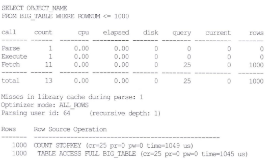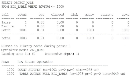 -> 1억 건짜리 BIG_TABLE을 쿼리하는 데 1초가 채 걸리지 않는다. 이것은 ARRAY 단위 FETCH 때문에 나타나는 효과다.