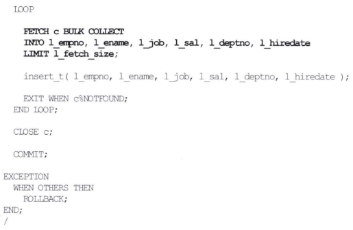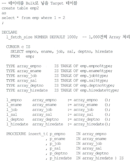 <PL/SQL을 이용해 데이터를 Bulk로 1,000건씩 Fetch해서 Bulk로 insert하는 예제 프로그램>