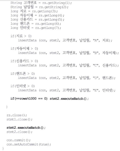 --> 여기서 '월요금납부실적' 테이블을 이용해 '납입방법별_월요금집계' 테이블 형태로 가공하는 ETL 배치 프로그램이 필요하다고