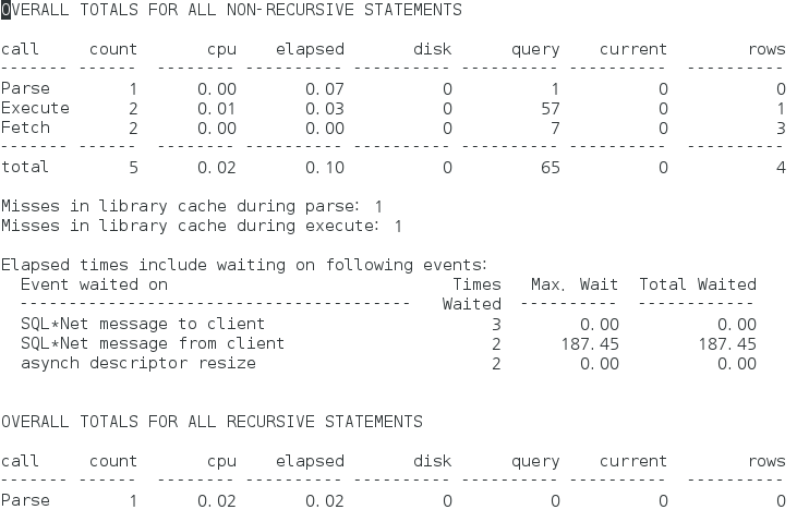 - Recursive Call : 오라클 내부에서 발생하는 Call을 말한다. SQL 파싱과 최적화 과정에서 발생하는 Data Dictionary 조회, PL/SQL