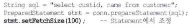 -> setFetchSize 메서드를 이용해 FetchSize를 조정한다.