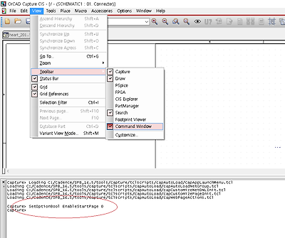 Capture에서 메뉴 View > Toolbar > Command Window를 실행
