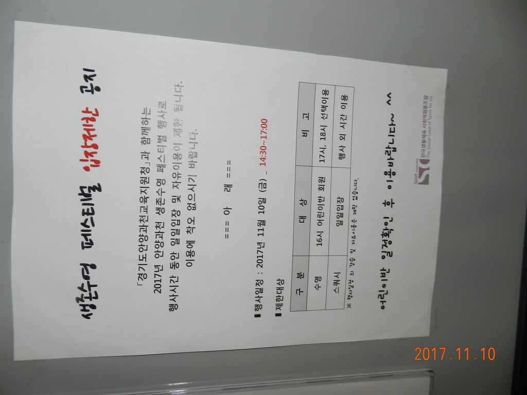 * 11.10 14:00~17:00 호계복합청사 지하수영장과 스쿼시장에서