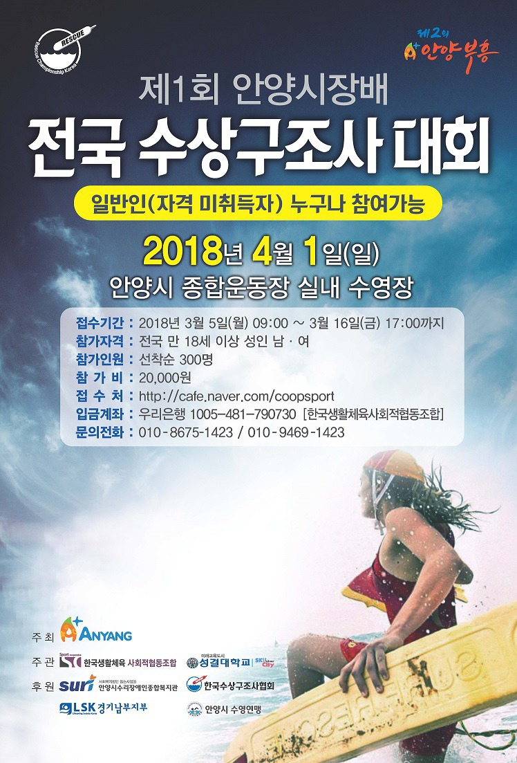 안양시에서 제1회 수상구조사 대회를 개최하게 되었습니다.