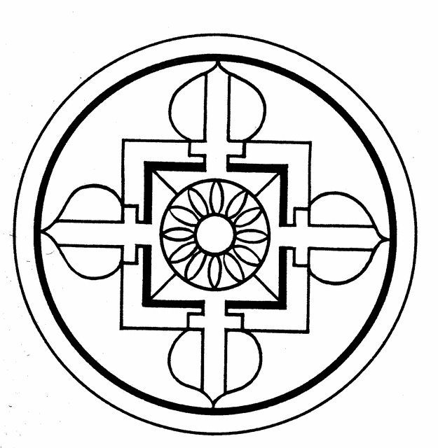 *중앙에 중심점이 있는 원: 원이 무, 공, 존재하지 않는 것을 나타내는 반면, 중심점은 신적인 본질이나 자기를 상징한다.
