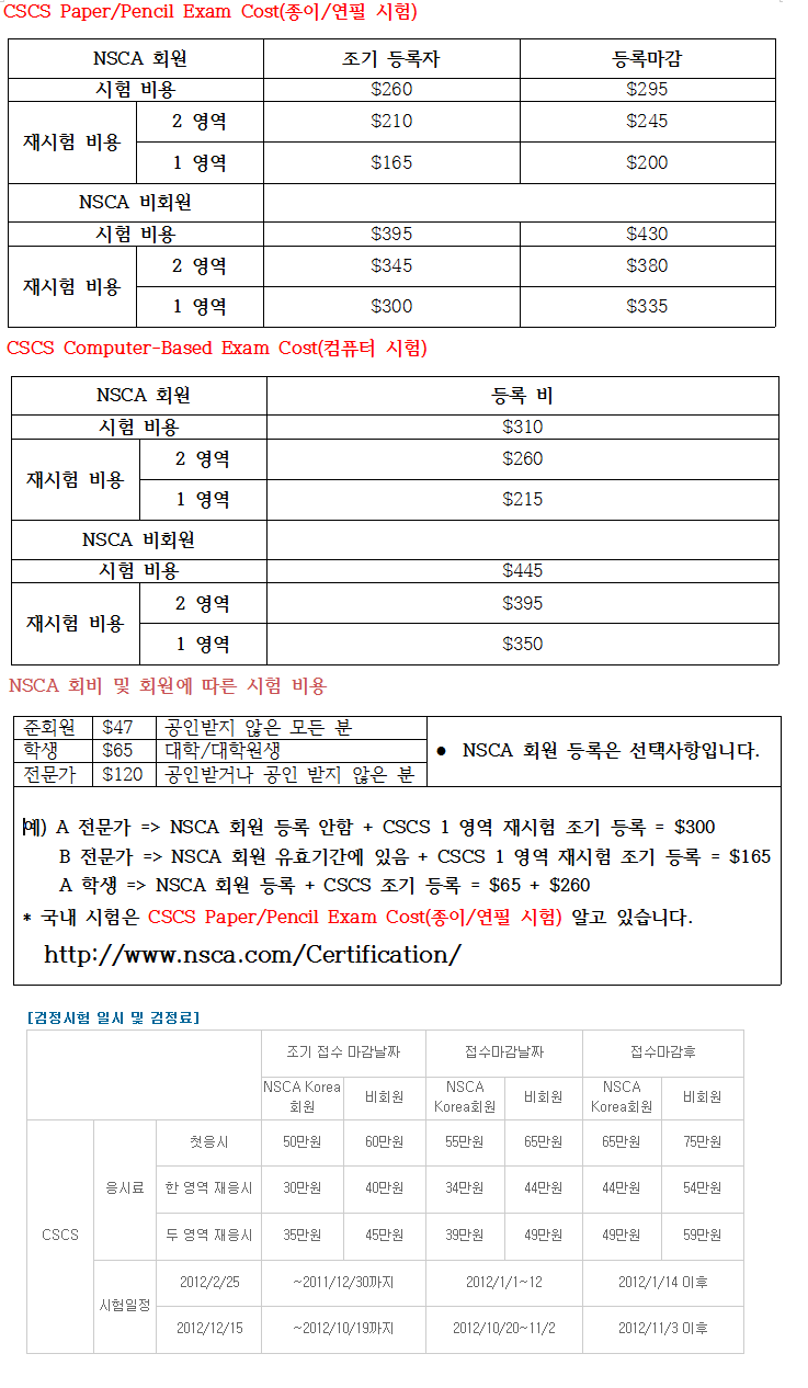 NSCA CPT / CSCS 자격 시험에 대한 안내입니다.