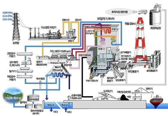 화력 및 원자력발전소에서는 석탄 등 화석원료를 연소시키거나, 우라늄 핵분열에 의한 열의 일부분만 전력으로 전환되고 나머지는 폐열로 분류돼 외부로 배출된다. 일반적으로 발전소 열효율은 화력발전이 40% 내외, 원자력발전이 35% 정도다. 화력발전의 경우 액화천연가스(LNG)를 연료로 이용한다면 49% 이상의 열효율 달성이 가능하다.2)3) 원자력발전이 화력발전보다 열효율이 낮은 이유는 연료 건전성의 제약으로 인해 터빈으로 보내는 증기 온도를 약 280℃까지밖에 올릴 수 없기 때문으로 알려졌다.4)