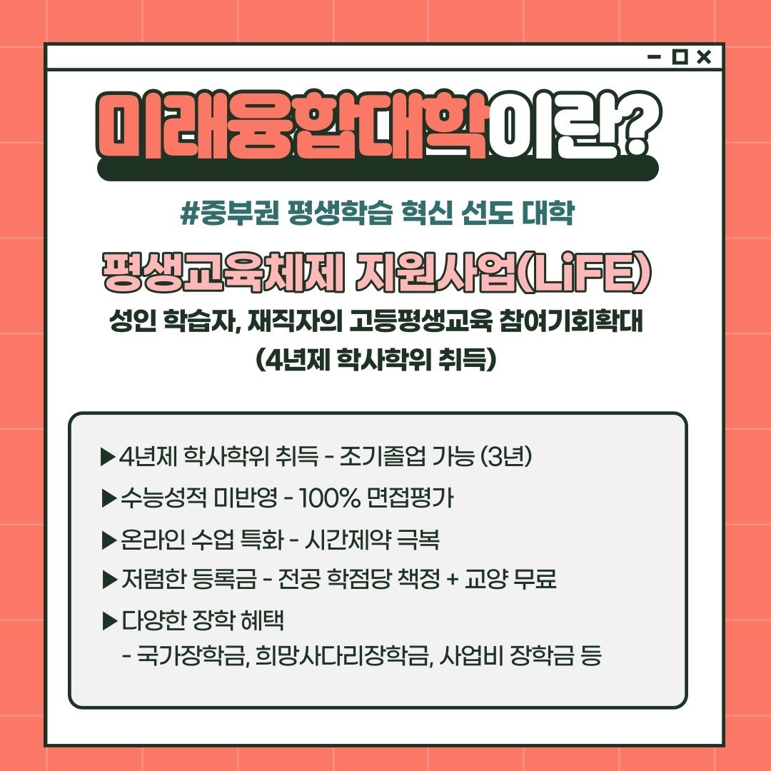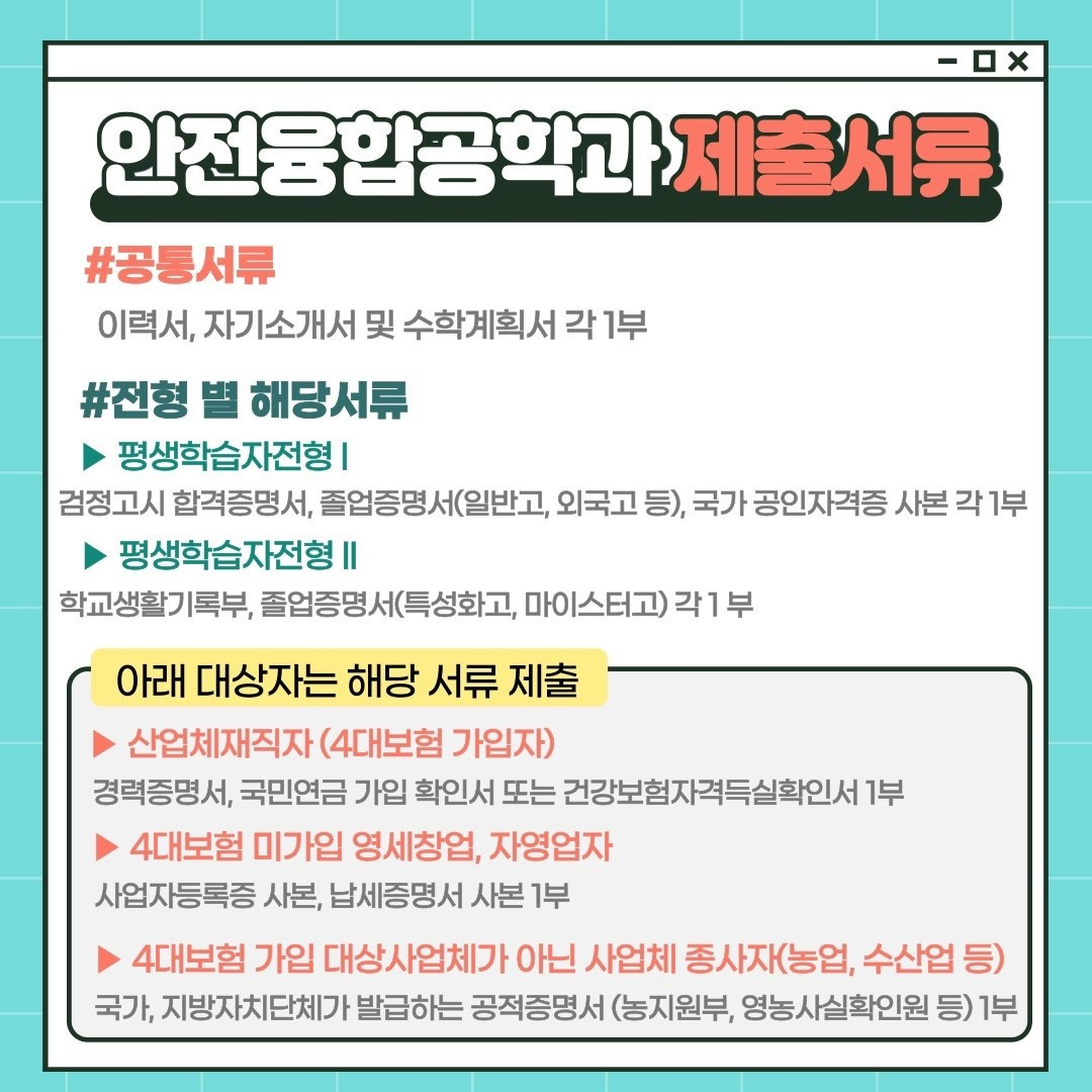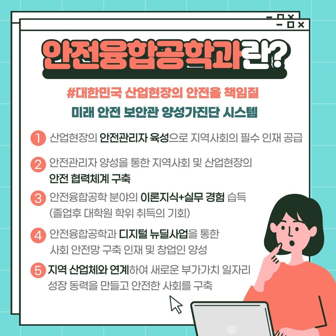 2022 한국교통대학교 미래융합대학교(안전융합공학과) 모집공고 작성자하선영(1,주)|작성시간22.01.30|조회수281 목록 댓글 0 글자크기 작게가 글자크기 크게가 안녕하세요 공정안전연구실입니다. 대한민국의 산업안전을 책임질 미래융합대학(안전융합공학과)에 대해 소개드리려고 합니다. 위 사진의 내용을 참고하여 많은 관심과 추천 부탁드리겠습니다. 감사합니다! 다음검색 현재 게시글 추가 기능 열기 북마크 공유하기 신고 센터로 신고 댓글 댓글 0 댓글쓰기 답글쓰기 댓글 리스트