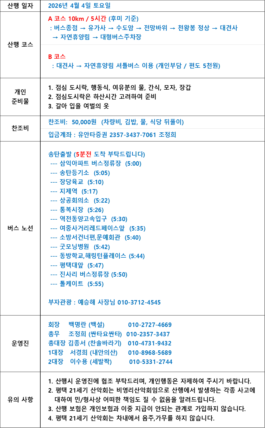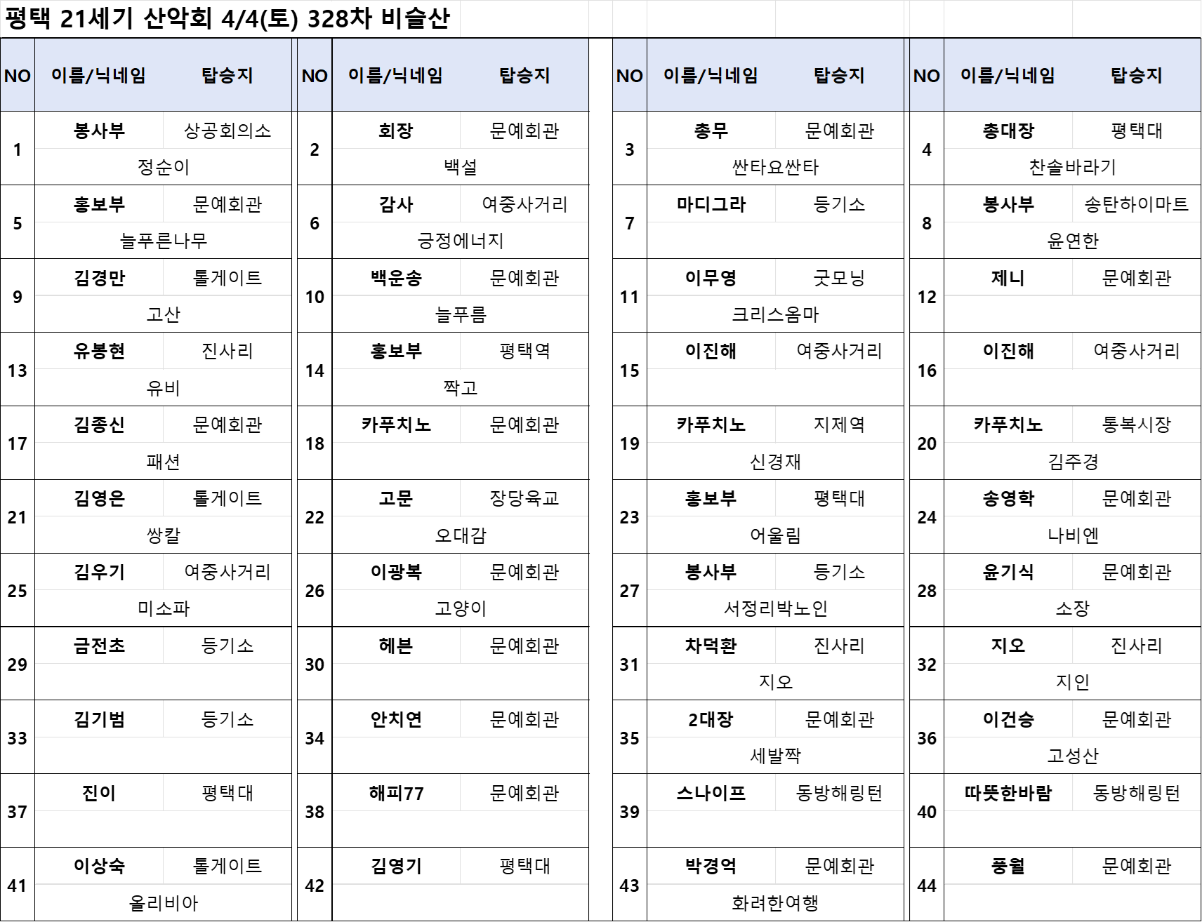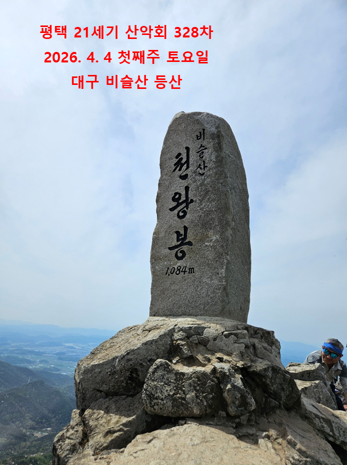 328차 2026년 4월 4일 대구 비슬산 산행 (진달래 만개를 꿈꾸며) 작성자찬솔바라기|작성시간26.03.04|조회수1,590 목록 댓글 66 글자크기 작게가 글자크기 크게가 4월 산행지 대구 비슬산으로 변경되었습니다. 산행 신청은 3월 22일 일요일 아침 10시부터 받도록 하겠습니다. 이렇게 진달래가 만개한 모습을 보고는 싶지만 첫째주 산행이 애매하네요 다음검색 현재 게시글 추가 기능 열기 북마크 공유하기 신고 센터로 신고 댓글 댓글 66 댓글쓰기 답글쓰기 댓글 리스트 작성자찬솔바라기 작성자 본인 여부 작성자 | 작성시간 26.04.03 **대기자 명단**.1. 소소하게님2. 산이슬님좌석 정리해 놓았습니다. 작성자찬솔바라기 작성자 본인 여부 작성자 | 작성시간 26.04.03 1자리 여유 있습니다 작성자포메틱 | 작성시간 26.04.03 혹 자리 있나요? 답댓글 작성자찬솔바라기 작성자 본인 여부 작성자 | 작성시간 26.04.03 1자리 있습니다 작성자포메틱 | 작성시간 26.04.03 계좌번호 부탁드립니다. 댓글 전체보기