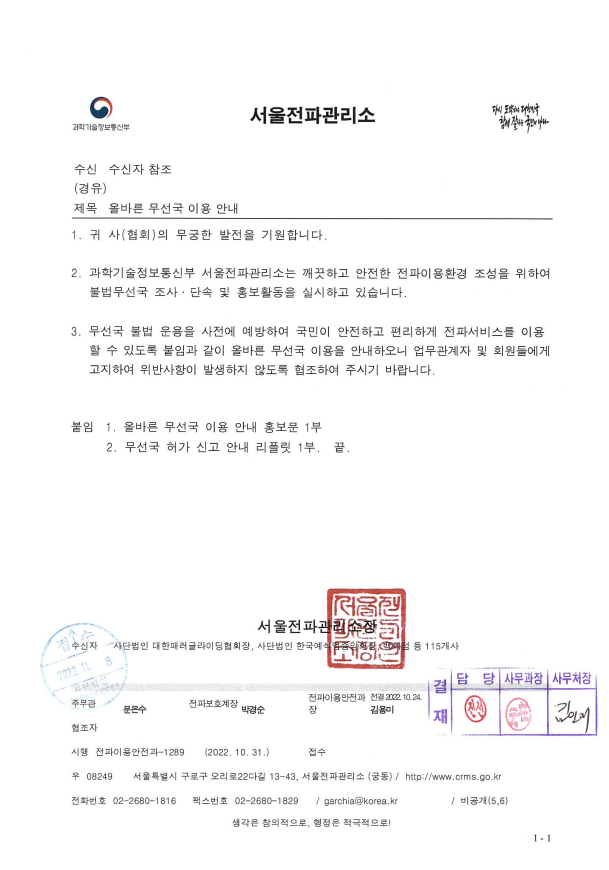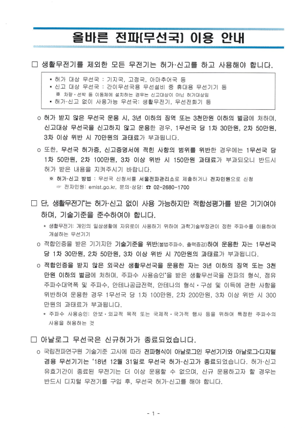 올바른 무선국 이용 안내 작성자이용규|작성시간22.11.08|조회수51 목록 댓글 0 글자크기 작게가 글자크기 크게가 다음검색 현재 게시글 추가 기능 열기 북마크 공유하기 신고 센터로 신고 댓글 댓글 0 댓글쓰기 답글쓰기 댓글 리스트