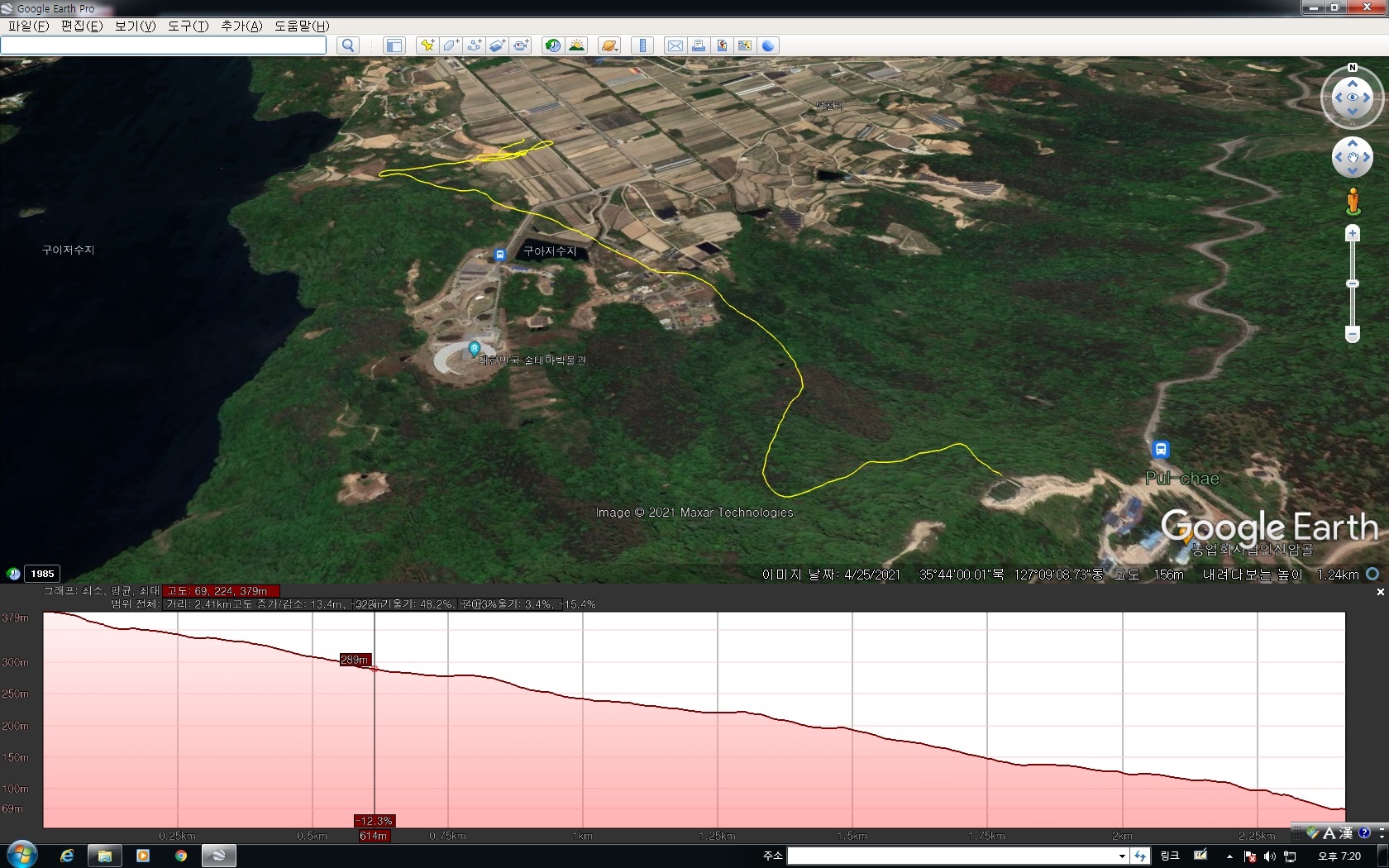 8.이륙고도 : 380m (최고 Flightlog m / dump=구글어스 m) 착륙 70m